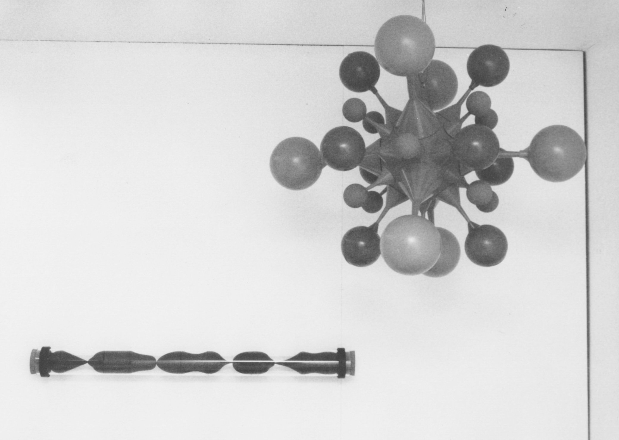 The other body of work is gallery based and consists of three-dimensional fabrications (static and kinetic). Industrial components selected for both their formal qualities and sign functions are combined in geometric relationships, alluding to biological structures on a microscopic and macroscopic scale.